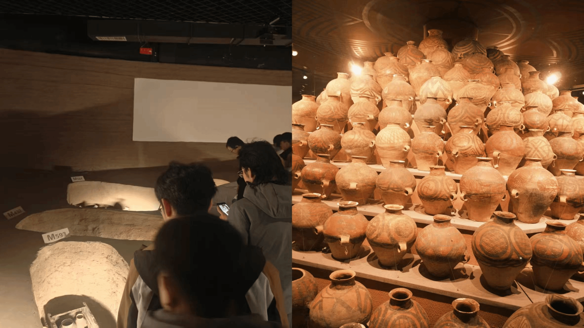 步入序厅,通过大型先民制陶生活浮雕及墙面文字介绍,快速明确场馆核心定位——聚焦马家窑、半山、马厂文化彩陶文明,同步了解柳湾遗址发掘背景与文物核心价值,为后续展区参观奠定基础。 沿参观路线进入展厅,以“漩涡纹彩陶瓮”为核心展品,近距离观察其“小口鼓腹”造型及模拟黄河水流的流畅漩涡纹;同时浏览周边彩陶盆、钵等器物,结合文字说明,明晰马家窑文化彩陶“薄胎、亮彩、纹饰以平行线、圆点纹为主”的典型特征,直观感受先民基础制陶工艺。此外,通过揉泥石板、绘纹骨笔等制陶工具展柜,梳理工具与工艺的发展脉络。